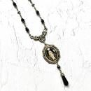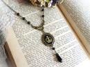 【*fuwari*】ロザリオ風ネックレス(ヴィンテージビーズ/ブラック)(N336)