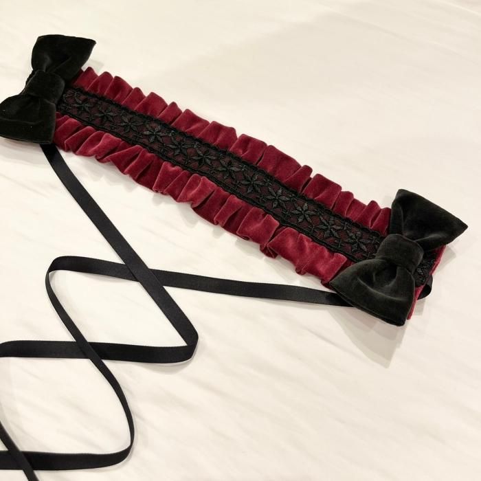 上質な別珍素材に立体的なリボンを配したクラシカルかつドーリーな雰囲気のヘッドドレス