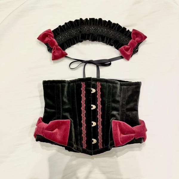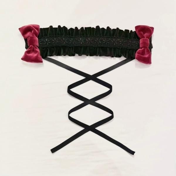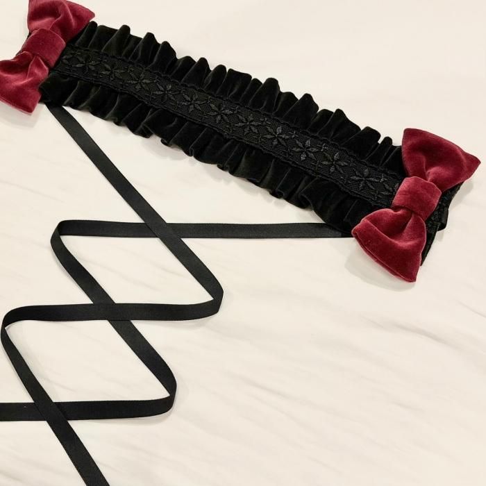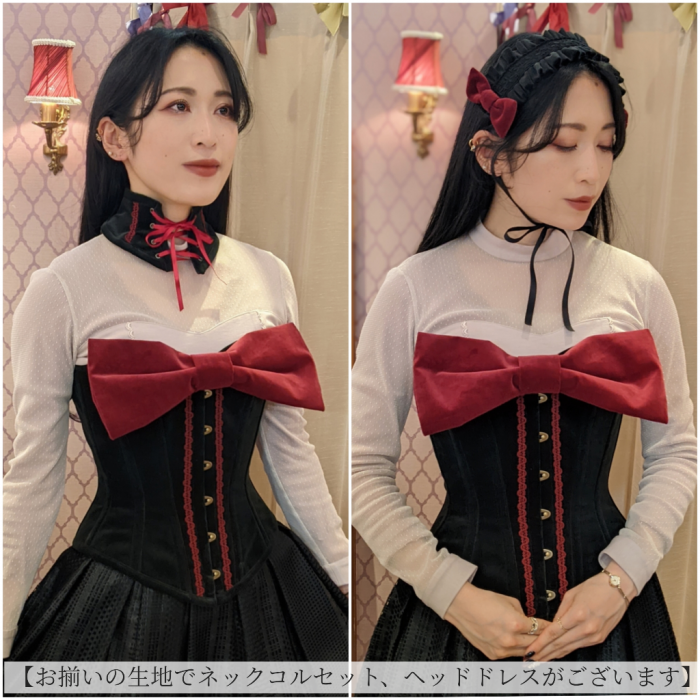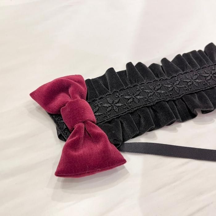 【受注生産商品:2月末まで】別珍リボンヘッドドレス(ブラック)