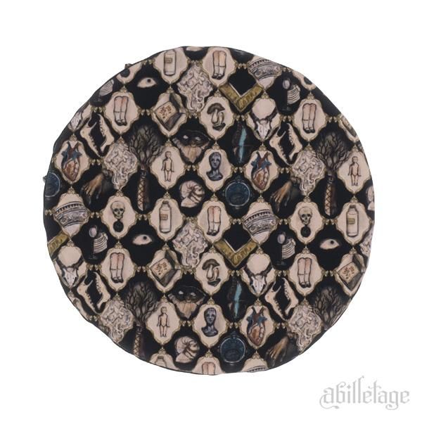 サイドは無地でシンプルに、縁とトップにはアートワークの柄を大胆にあしらったベレー帽です。