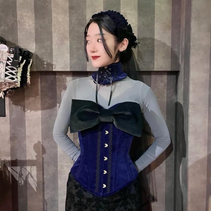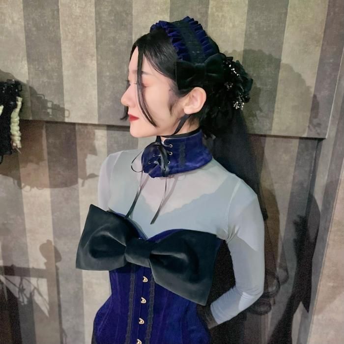 【受注生産:2月末まで】別珍リボンネックコルセット(ネイビー)