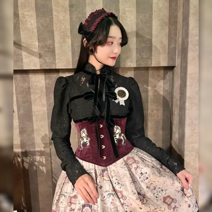 【受注生産:2月末まで】別珍木馬コルセット (ワイン)