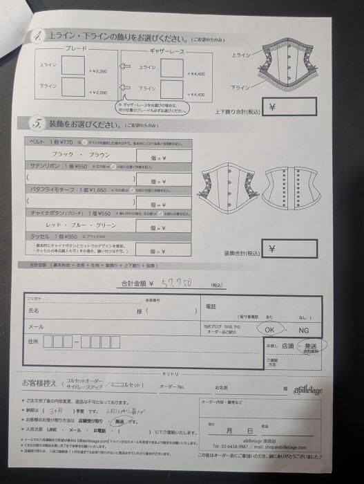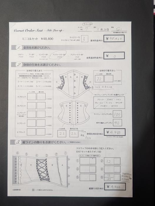 この度はオンラインコルセットオーダーをご利用いただき誠にありがとうございました。