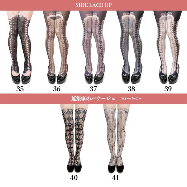 38,corset tights SIDE LACE UP -BLUE GRAY-