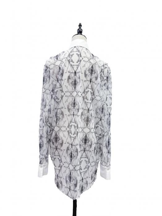 画家・金子國義の作品を組み合わせたテキスタイルを使用したシアーシャツ。