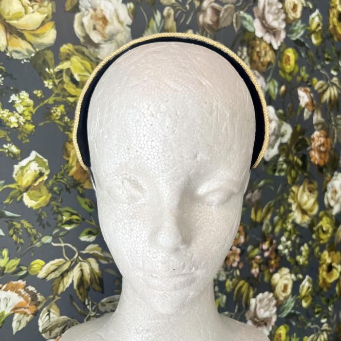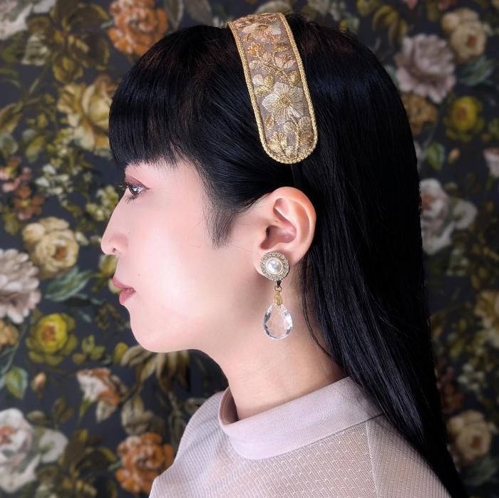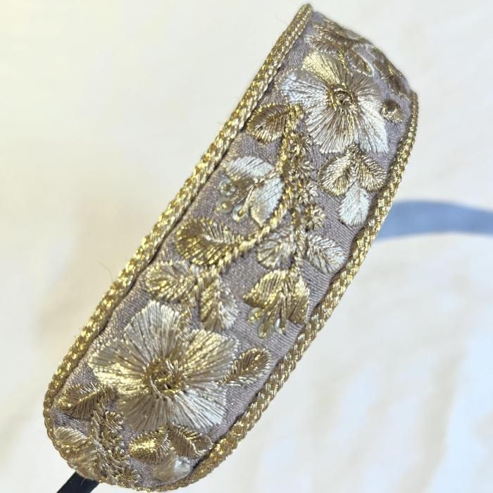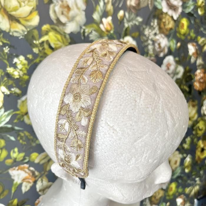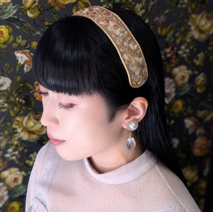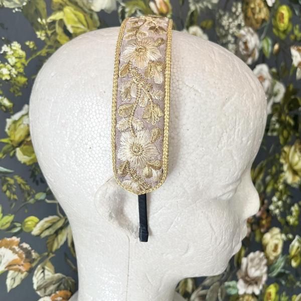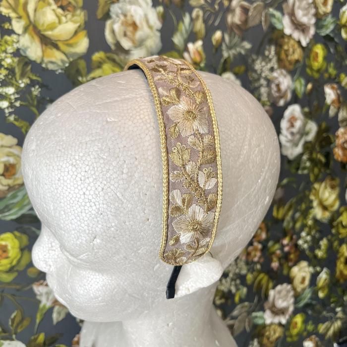 【Sleeplesschilds】(no.4016)刺繍リボン カチューシャ(ピンクゴールド)