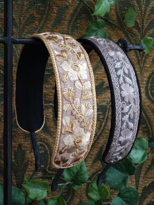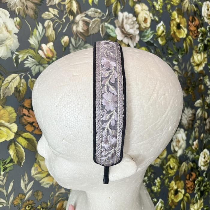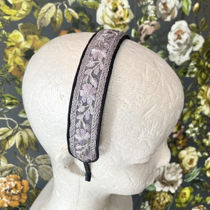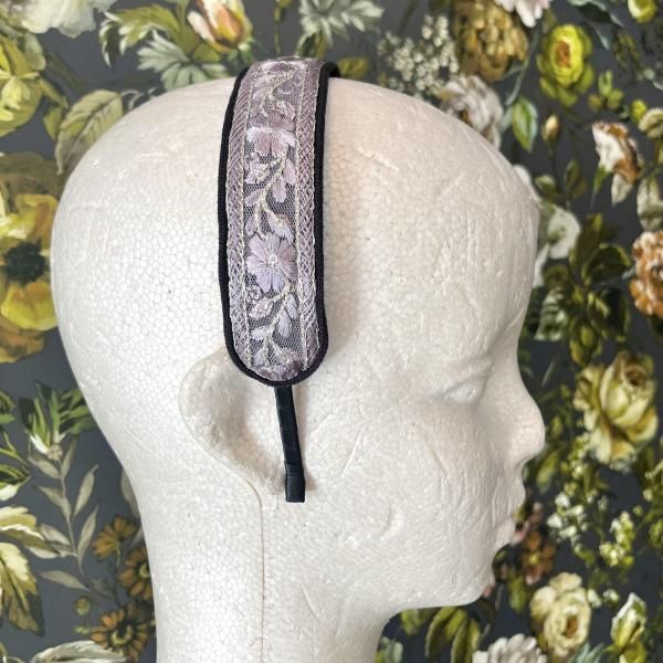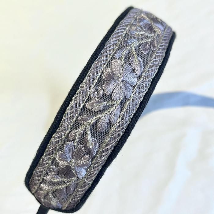 【Sleeplesschilds】(no.4017)刺繍リボン カチューシャ(パープルブラック)