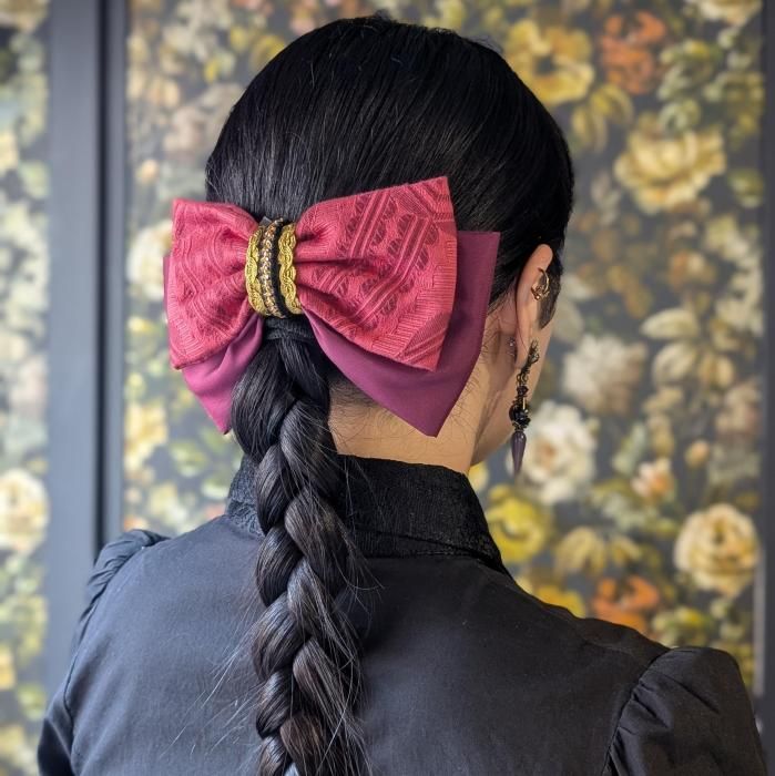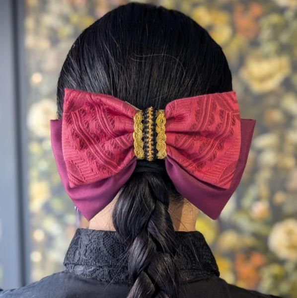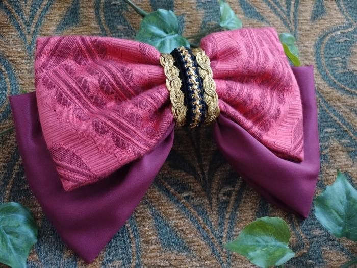 【Sleeplesschilds】(no.4020)リボンバレッタ(ローズレッド)