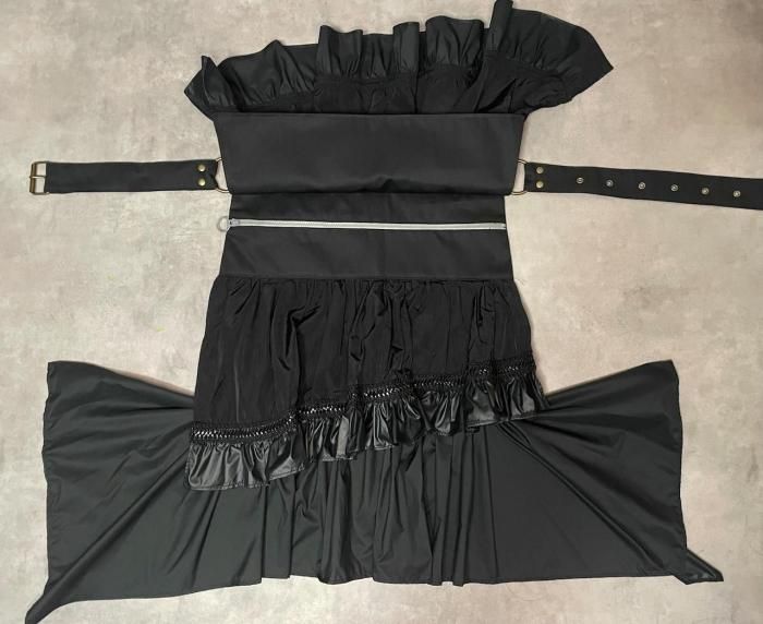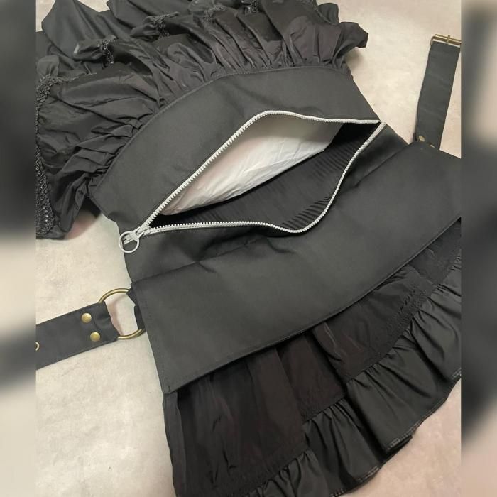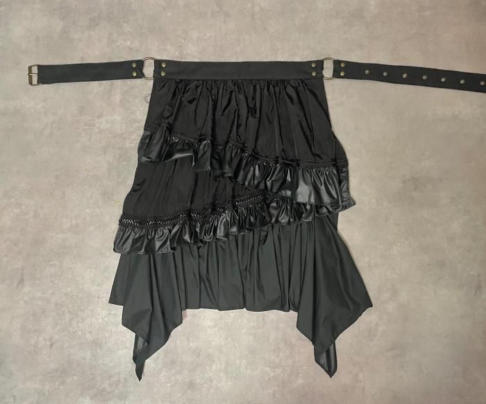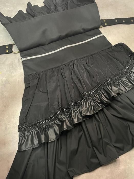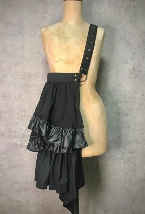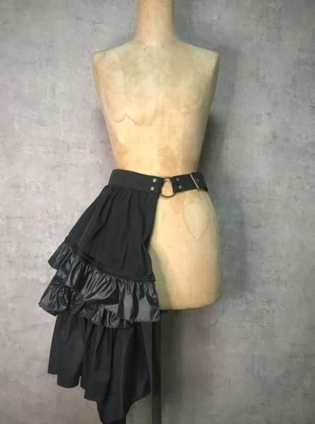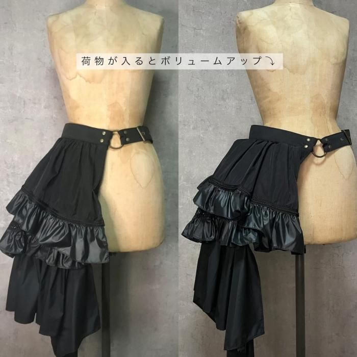 ◇Bustle Belt Bag◇ バッスルとは、主に中世ヨーロッパのドレスの背部の膨らみを誇張し体のラインを美しく見せるための補正衣服。 その本来の用途とはかけ離れていますが、その形に着想を得た「日常で着飾れる」をテーマに製作したアイテムです。 サイズ ベルト:ハトメ穴でサイズ調整/72~120cm(12穴) 縦:31cm(金具まで)/50〜62cm( バッスル部分を含む) 横:36cm