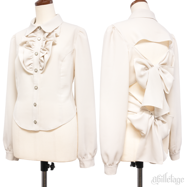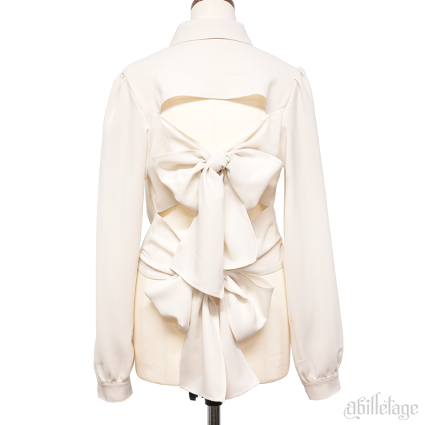 Plaid de Mémoireバックオープンブラウス(アイボリー)