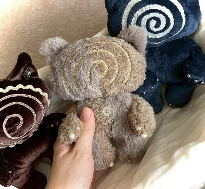 ◇ぐるぐるフレンズ◇ 手作りのぬいぐるみ。 彼らもそれぞれ不安を抱えた小さなお友達です。 お好きなぐるぐるの表情、つめの形や色であなただけのぐるぐるフレンズを... 特徴 ●本体カラー:Misterious black ●ぐるぐる:ゴールド 以下ご選択いただけます ●表情 ●つめ ●擬態 ●キーホルダー金具: サイズ 全長:17cm×横幅:12cm