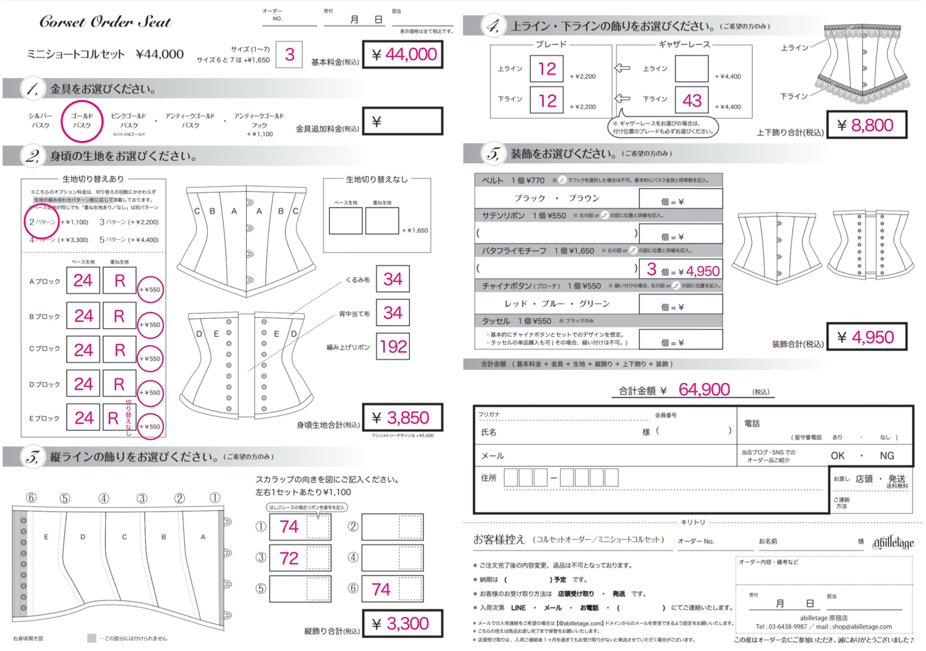 こちらはトップ画像のコルセットデザインで注文をご希望の方のページです。 金具変更やリボン色変更、型変更など、ちょっとしたカスタムをご希望の方、 ご不明点等ございましたらabilletage公式LINE、もしくはメールにてお問合せください。 ※メールの場合はご返信にお時間をいただく場合がございます。 ●生地見本帳セットを手元で見ながらフルオーダーをご希望の方は こちら 生地見本帳セットのご用意は個数に限りがございます。 お貸出しは日時を決めさせていただいた上で発送の手配、オンライン接客させていただきます。 余裕を持った日程でのご注文くださいませ。