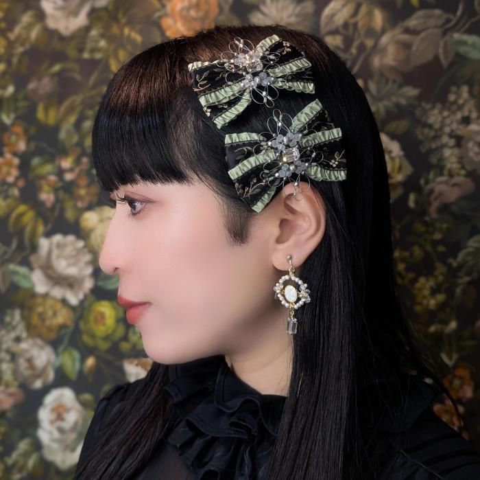 今回の幕間は架空のアンティークショップをテーマにアビエタージュさんに似合いそうな繊細なパーツやビーズを組み合わせたアクセサリーを製作しています。