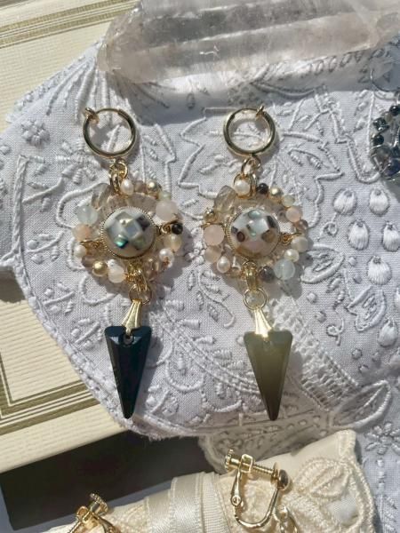 11月ピックアップブランド atori アトリ atoriはお話の国を旅して情景を形にするブランドです。 近年は創作の旅行記やガイドから生まれたアクセサリーを中心に製作。 --今回のテーマ-- atoriは創作の国を渡り歩きながら製作を行っています。 それとは別にイベント限定やコラボ、季節物などを創作の国々の間という意味合いで幕間と名付けて発表しています。 今回の幕間は架空のアンティークショップをテーマにアビエタージュさんに似合いそうな繊細なパーツやビーズを組み合わせたアクセサリーを製作しています。 一つずつ形が違うのでお客様方に楽しく選んで頂けますと幸いです。 X:@atoriirota Instagram:@atori_kimoto