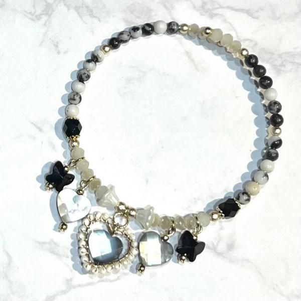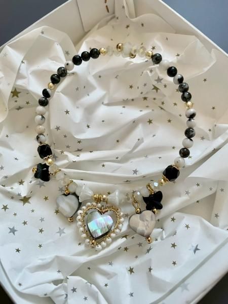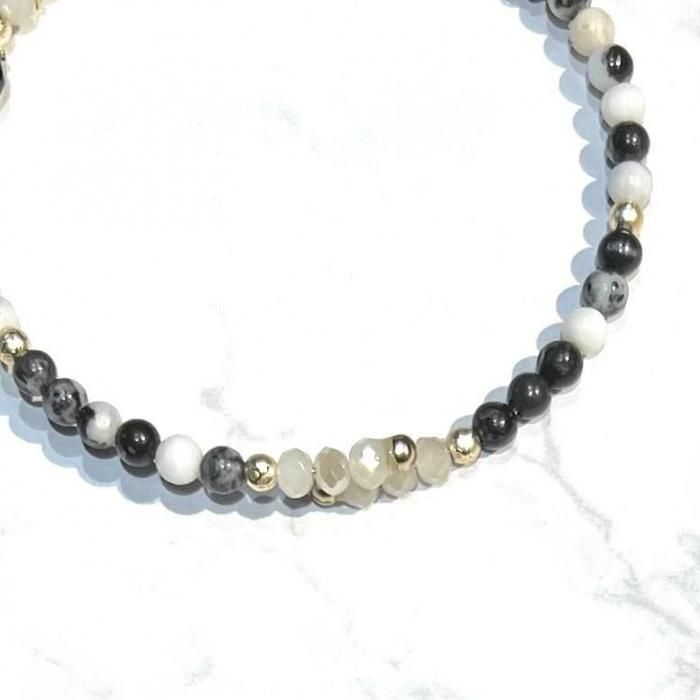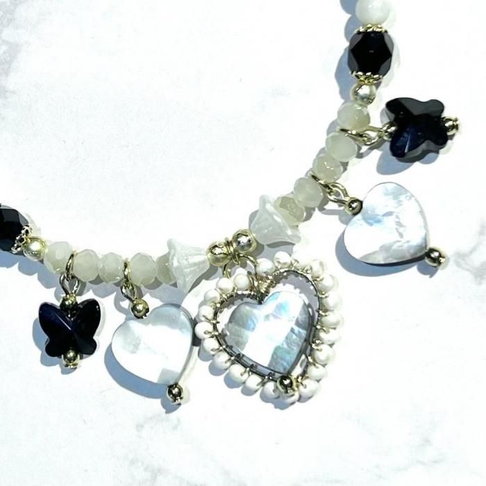 素材:ガラス、貝、淡水パール、ガラス、ゼブラジャスパー、チェコビーズなど