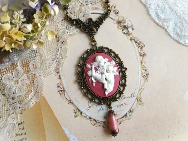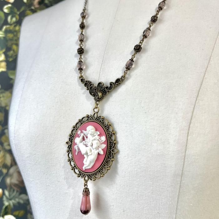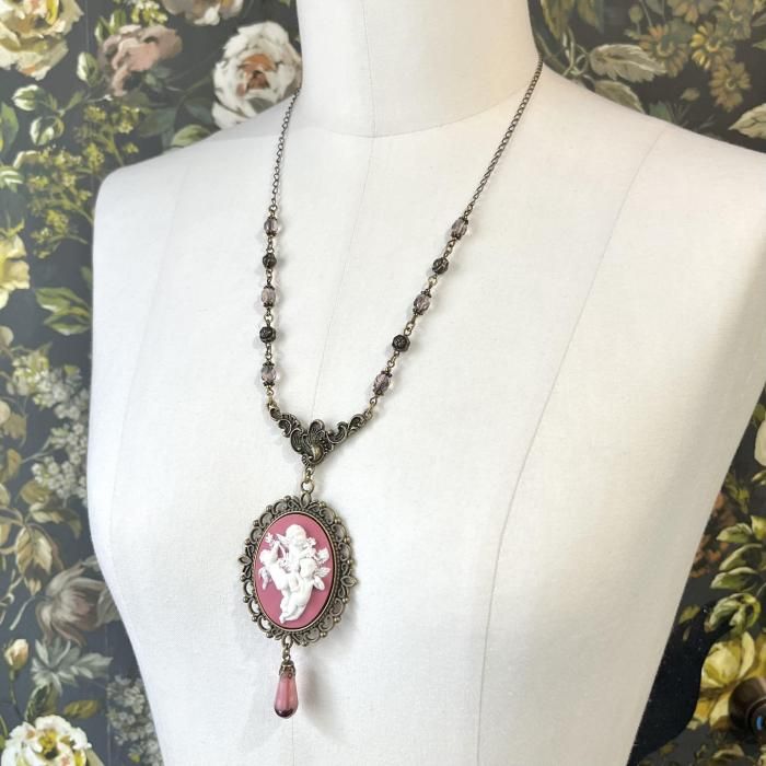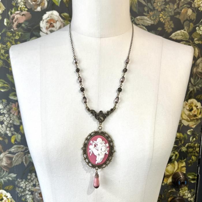 【*fuwari*】天使カメオのネックレス(ピンク)(N328)