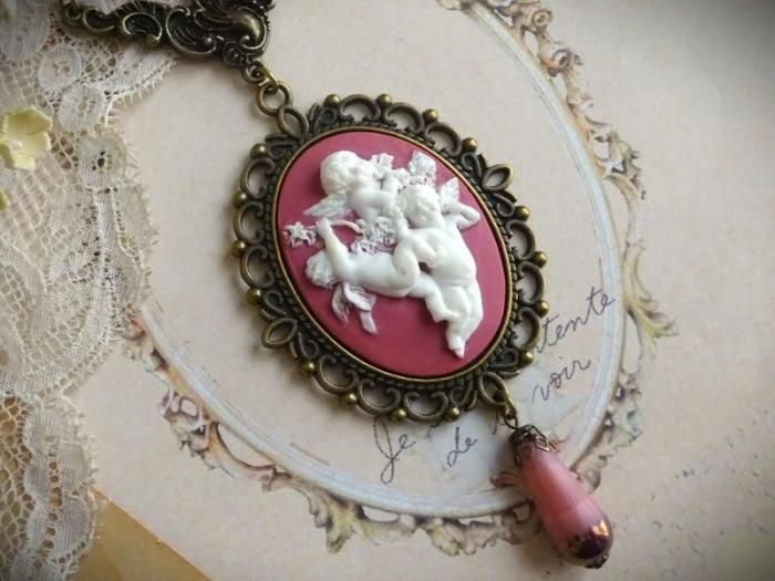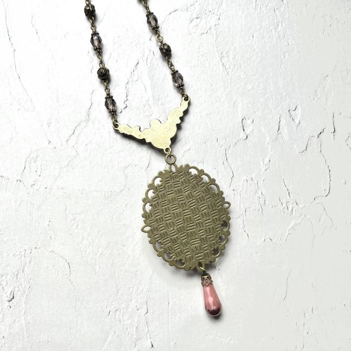 くすみがかったようなピンクが特徴的な存在感のあるカメオのネックレス。