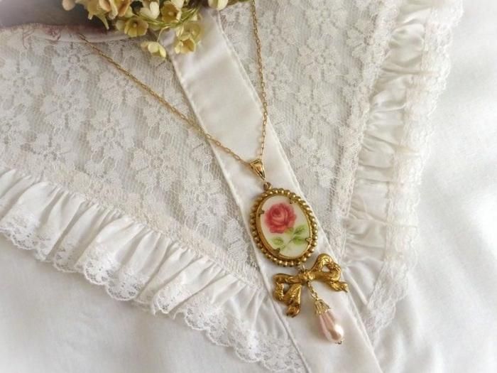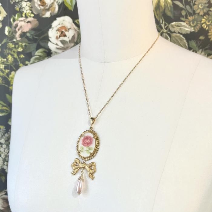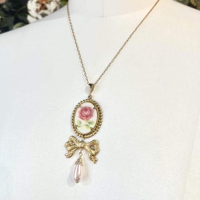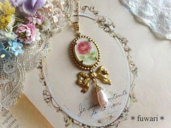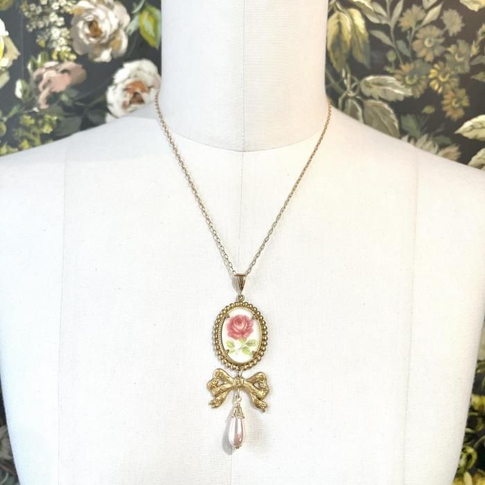 【*fuwari*】ローズカメオネックレス(N337)