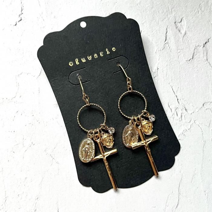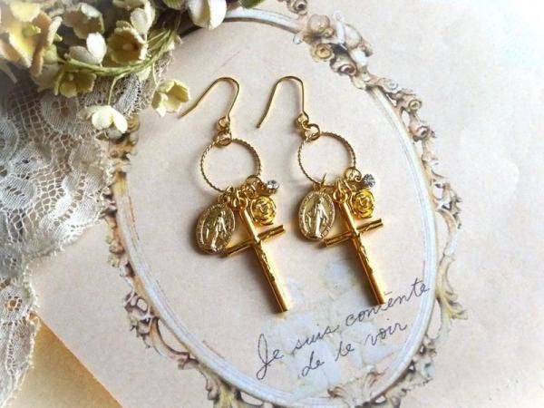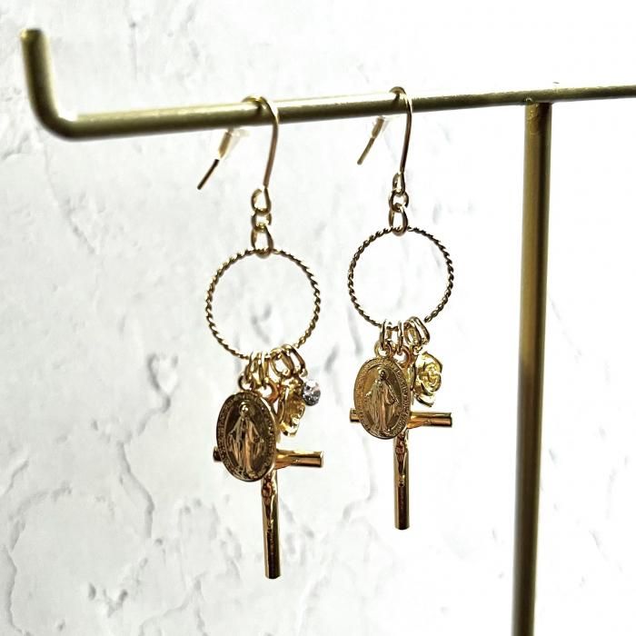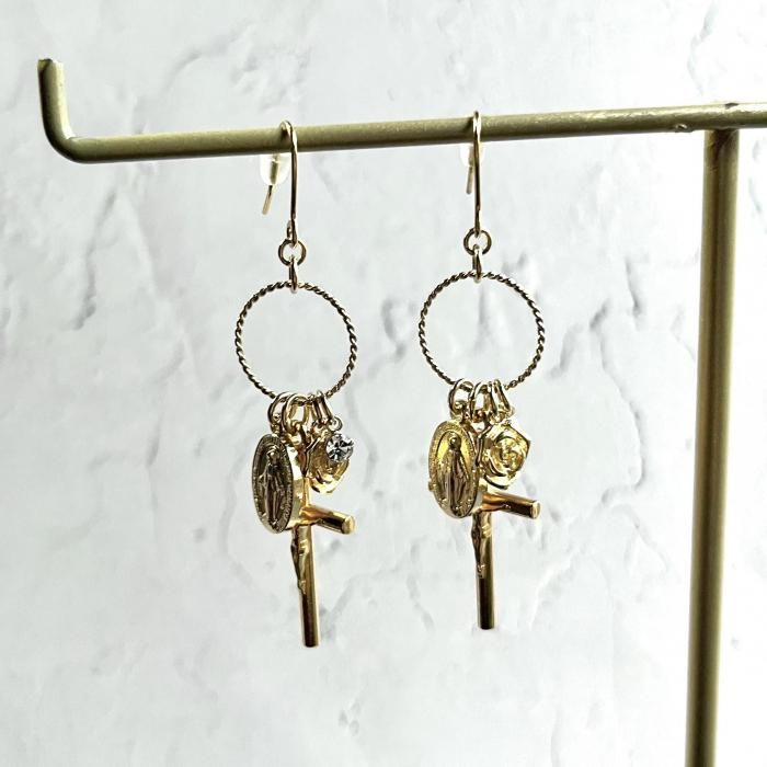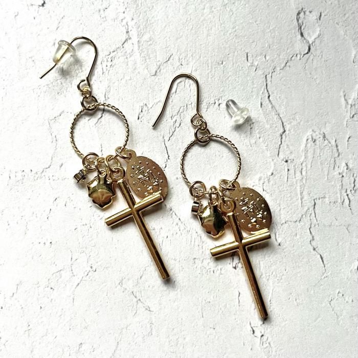 【*fuwari*】イタリア製メダイと十字架の耳飾り(P317)