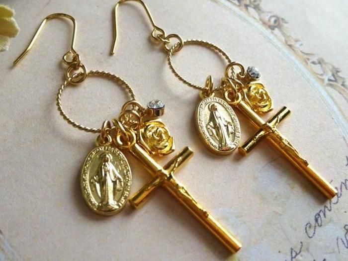 ◇イタリア製メダイと十字架の耳飾り◇